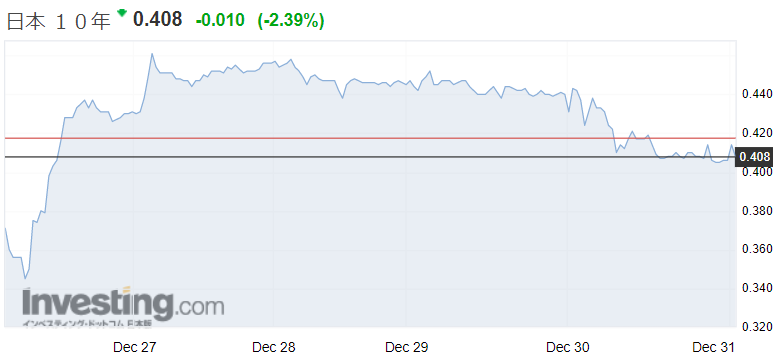 直近値は約「0.41%」(前週末は「0.37%」)で前週より上昇。