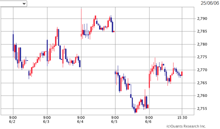 この水準になると株価が頭打ちになりやすい傾向、と本ブログではしばしば述べていますが、今週はTOPIX2800台を保てず、この水準に跳ね返された形。