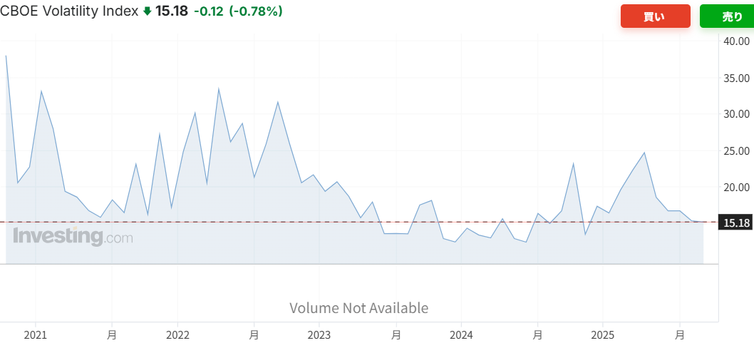 1990年以降の長期中央値は「18.0」(月末値データより算出)。