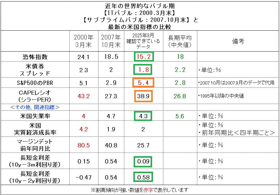 あくまで経験的な判断ですが、現時点で各指標が示唆する株式の割安、割高の判断をまとめます。