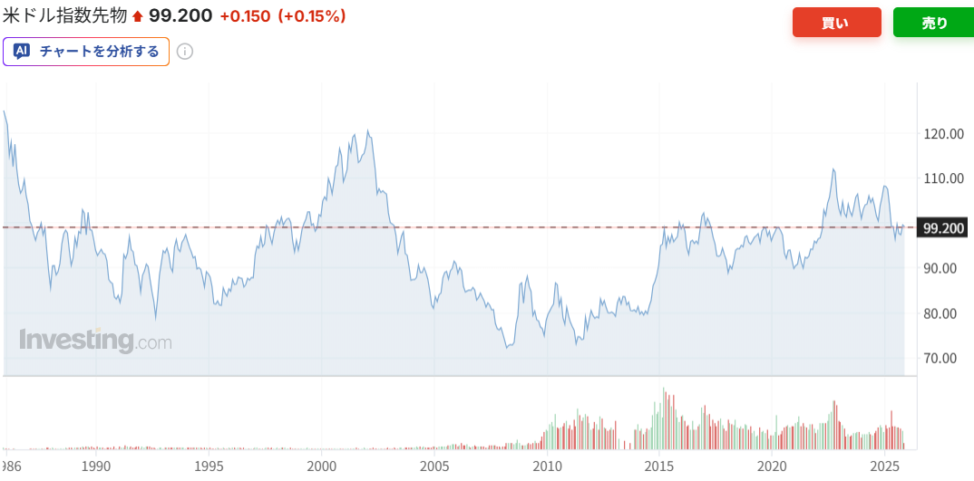 そして2025年4月に再び大きく下に沈むも、5月に浮上後はずっと上に位置。
